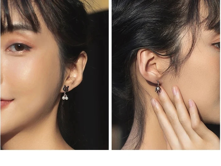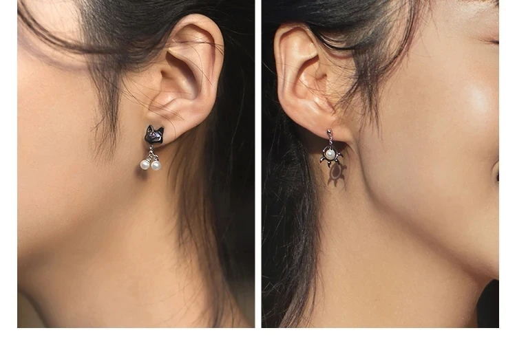 Mystic Fox & Pearl Asymmetric Earrings 925 Sterling Silver